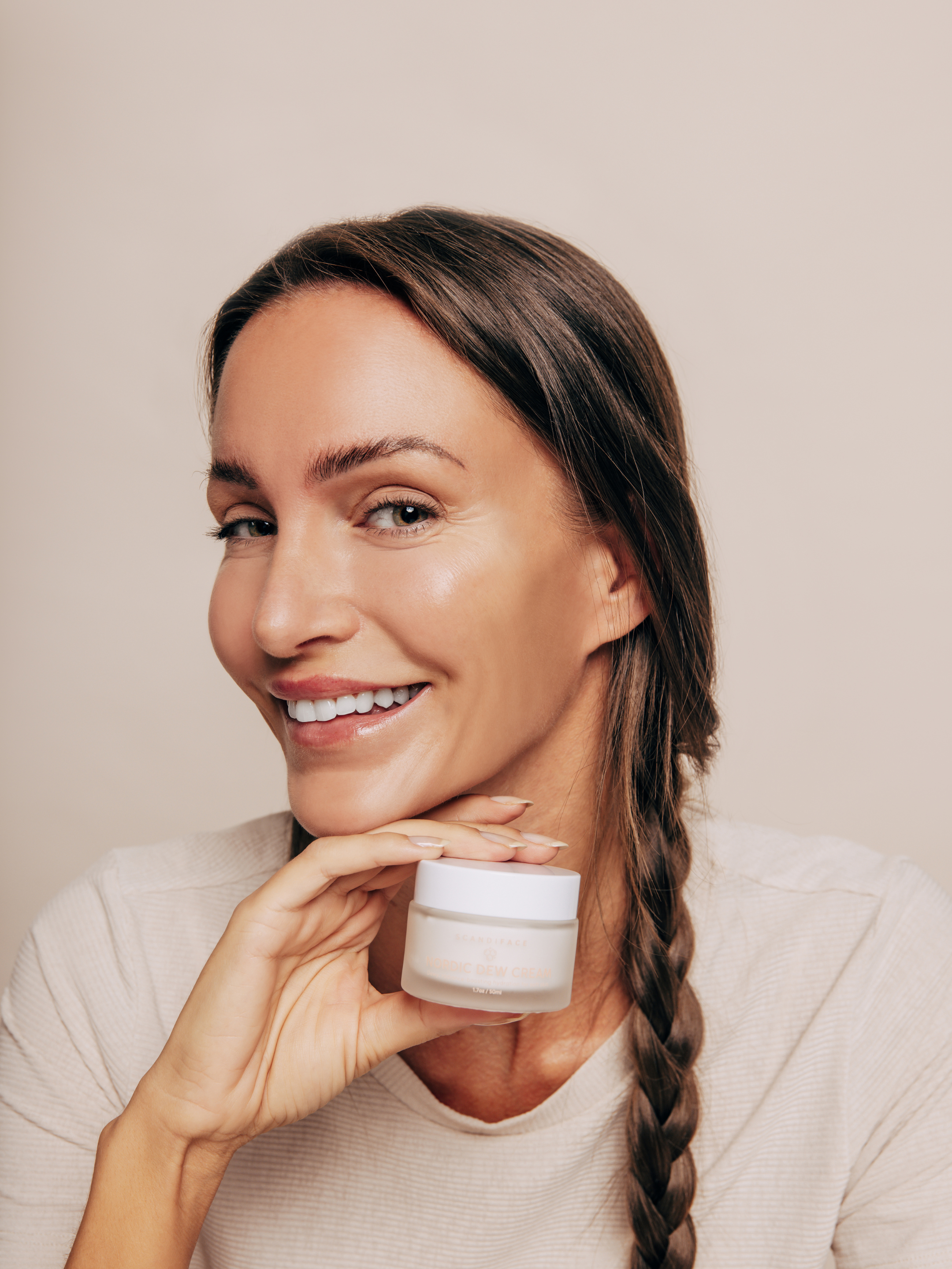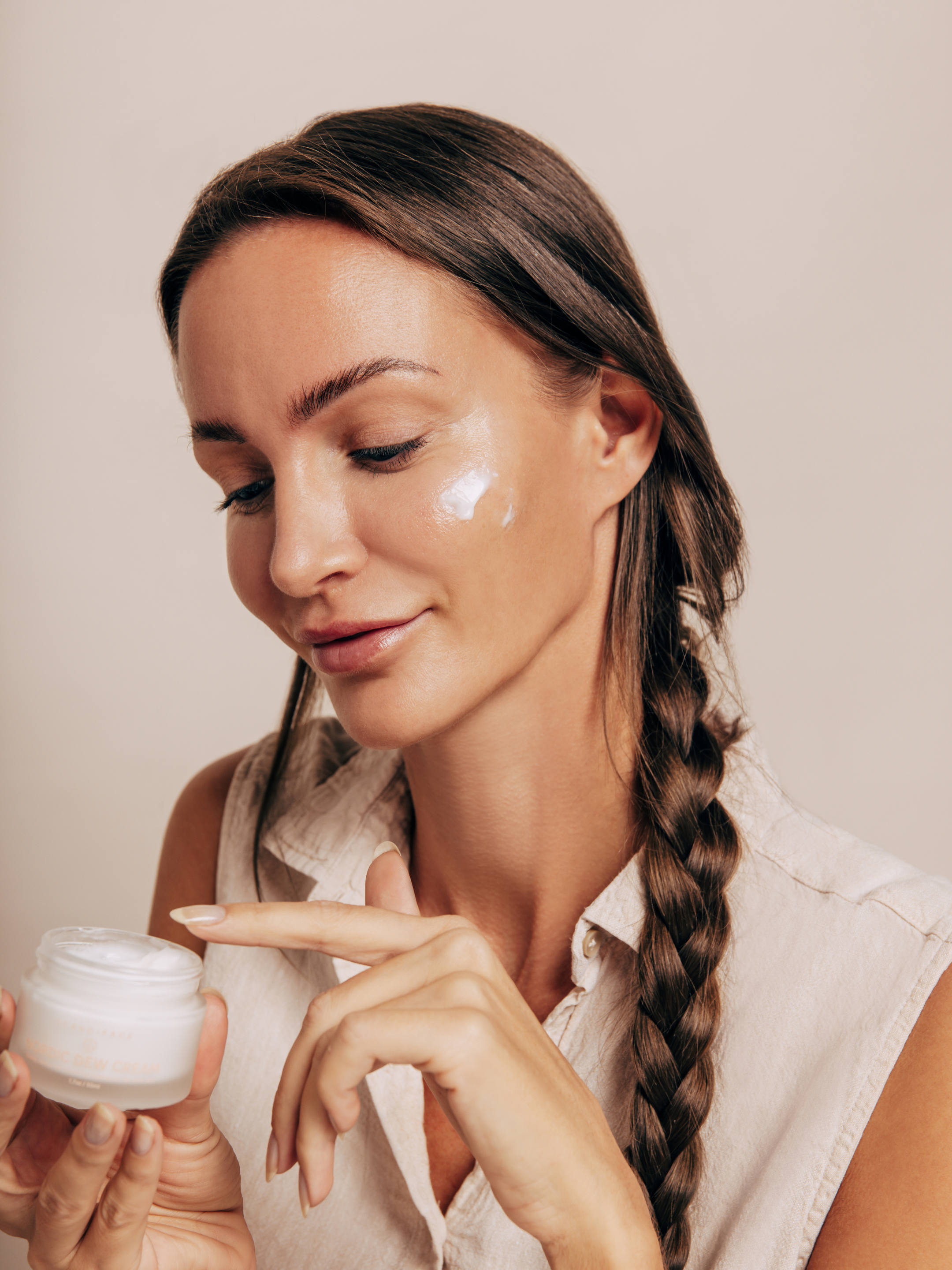 Nordic Dew Cream er en fugtgivende og reparerende creme, der smelter ind i huden uden at føles tung.
