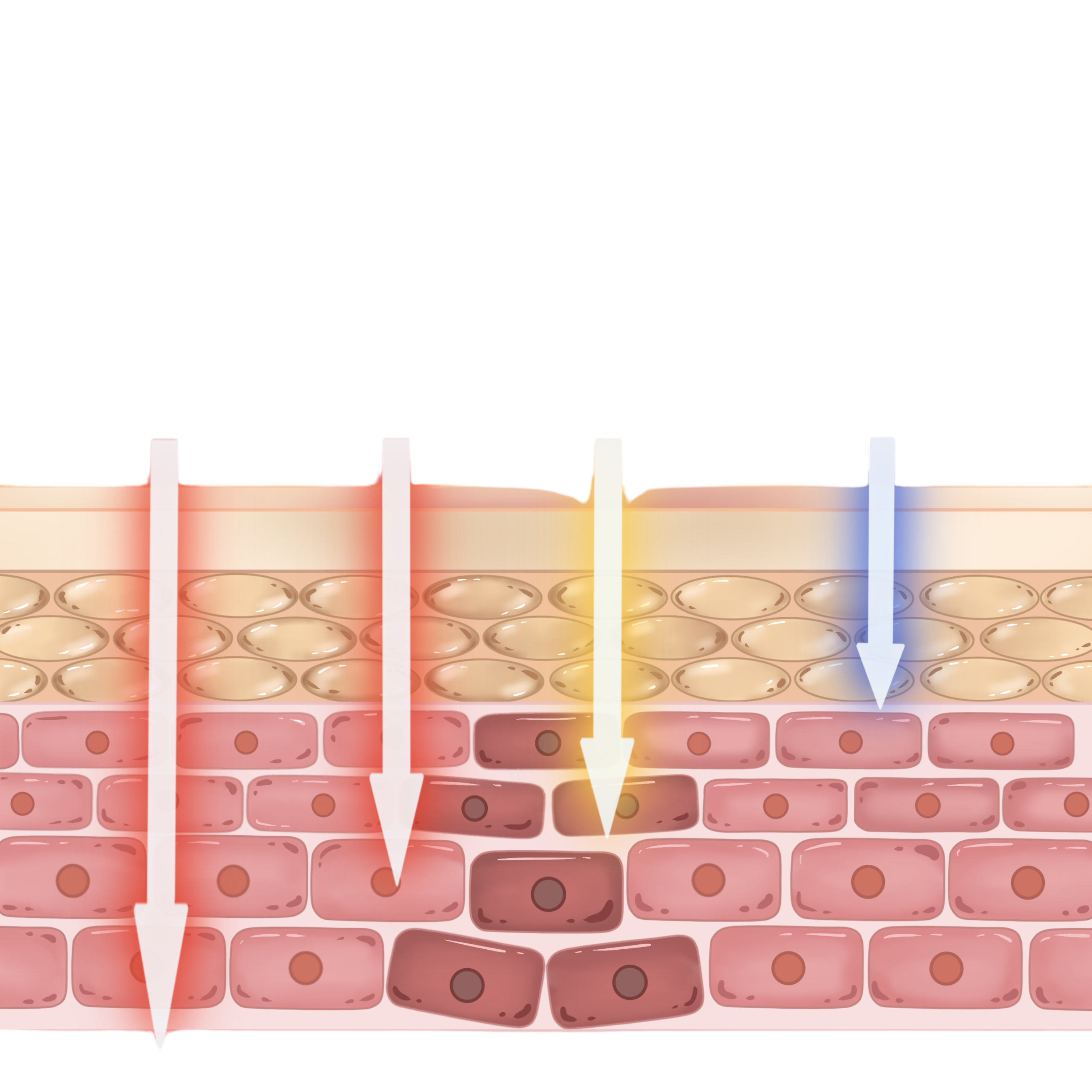 Går dybere for at stimulere cellefornyelsen, hvilket giver huden et synligt løft og forbedret elasticitet. Lyset er usynligt for øjet.